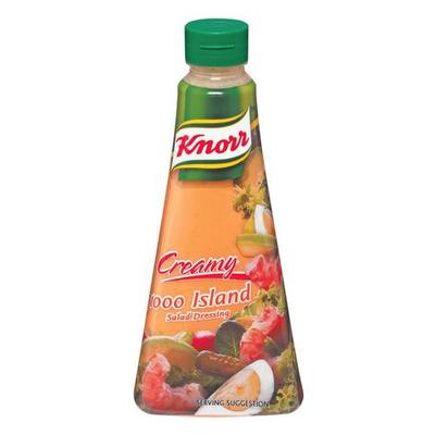 Knorr salad dressings 1000 islands 340 ml a tangy mayonnaise based sauce combined with finely chopped herbs vegetables and flecks of cayenne pepper.