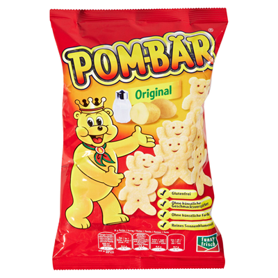 Pom bear is a brand of teddy bear shaped snack food made out of potatoes.